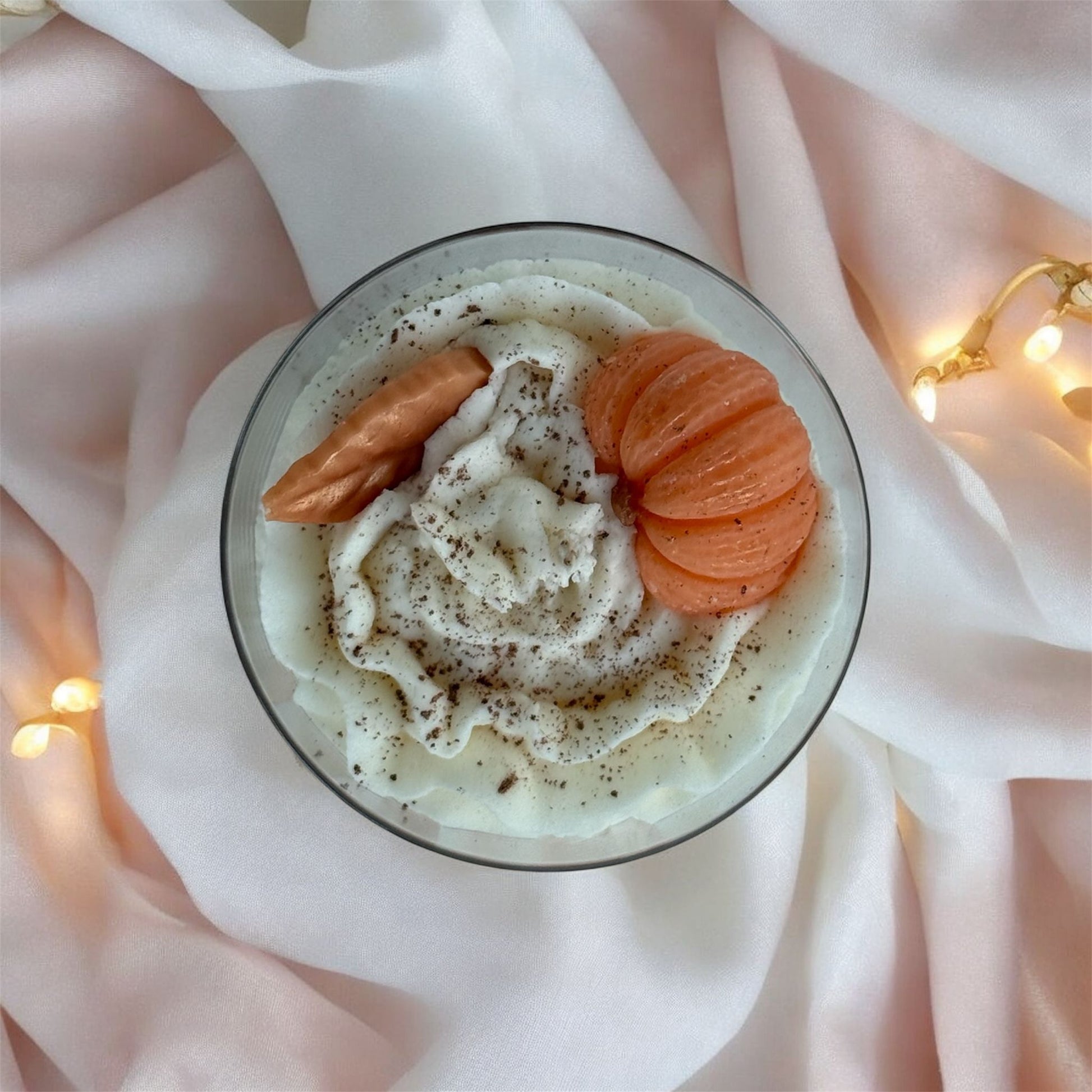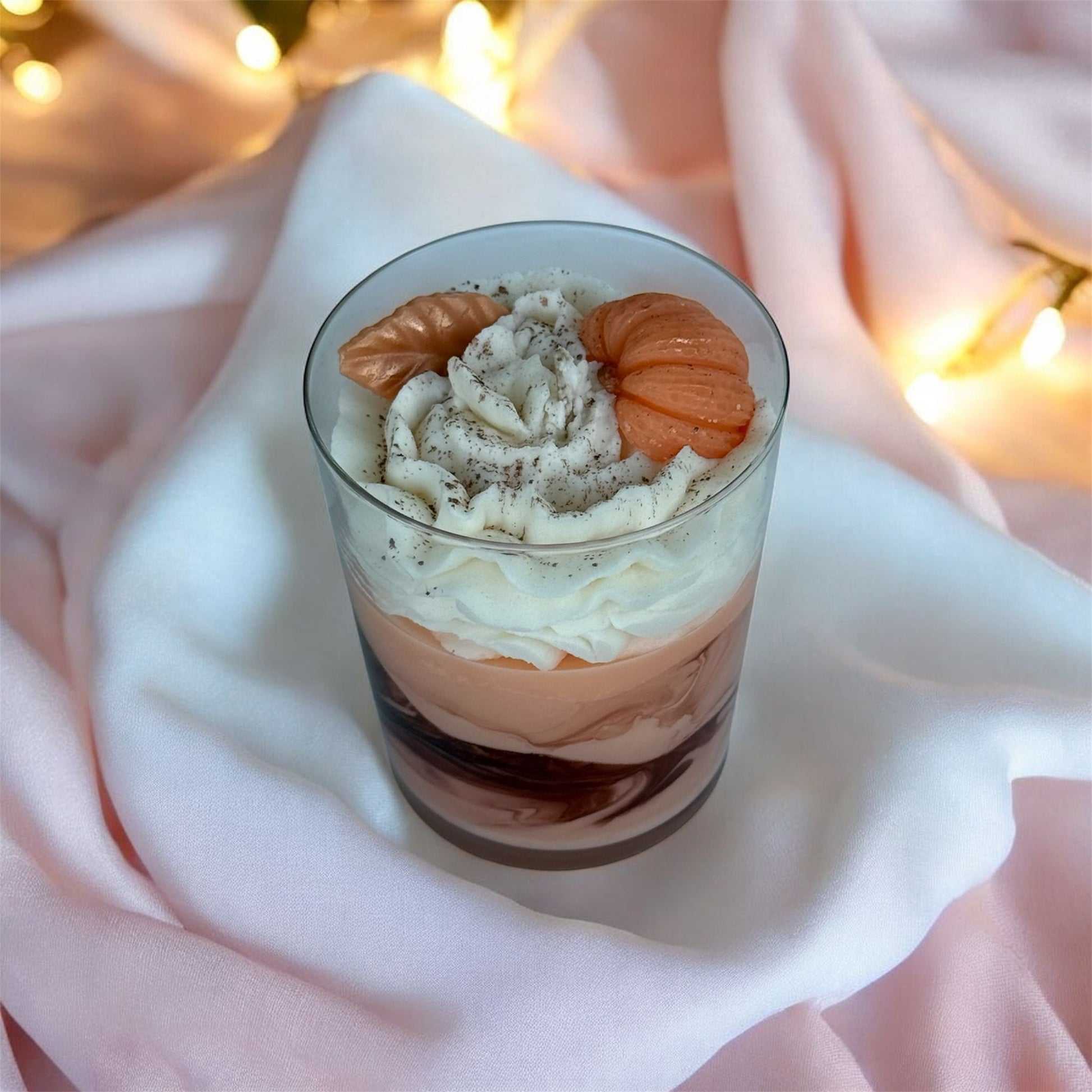 Ingrediente: Ceară de soia 100%, parfum cosmetic, decor din ceară realizat manual